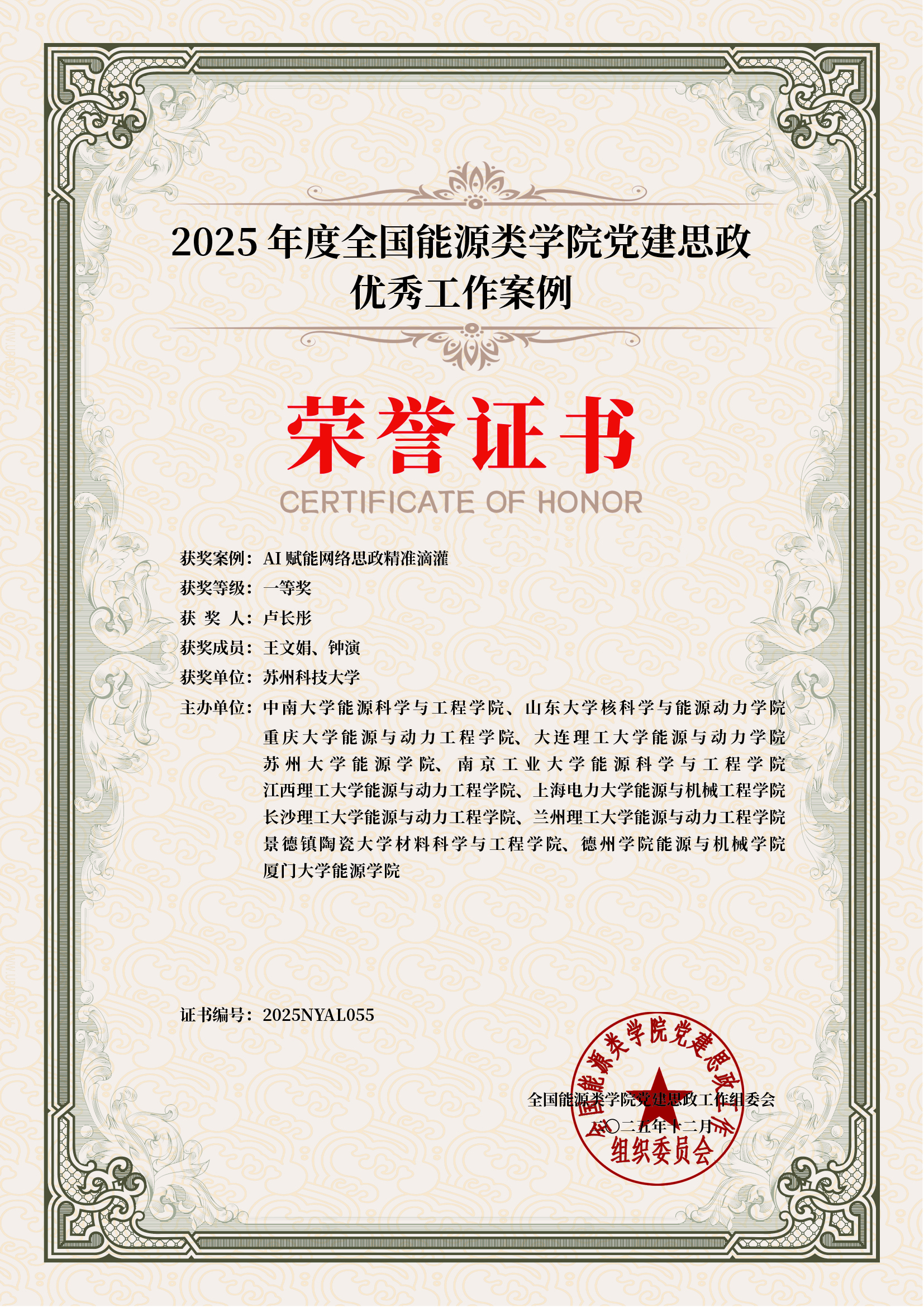 卢长彤、王文娟、钟演老师撰写的工作案例《AI赋能网络思政精准滴灌》获评全国一等奖。