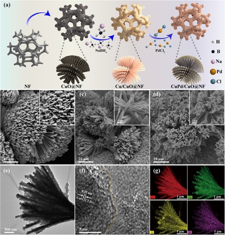 综上,作者成功制备了一种纳米花状的CuPd/CuO异质结构,并将其应用于硝酸盐还原反应和锌-硝酸盐电池中。通过实验和理论计算,揭示了该材料在不同浓度溶液中的优异电化学性能,并探讨了其在能源输出电催化系统中的应用潜力。