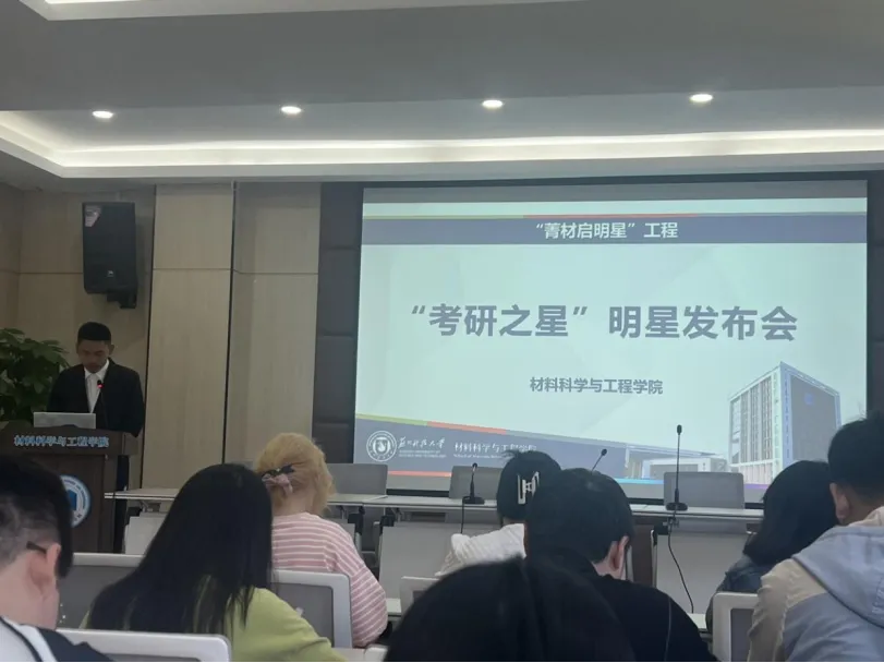 在院士楼报告厅组织“考研之星”明星发布会。本次会议特邀24届优秀考研代表胥颖、邓智远、高卫、李响为我们分享考研经验。