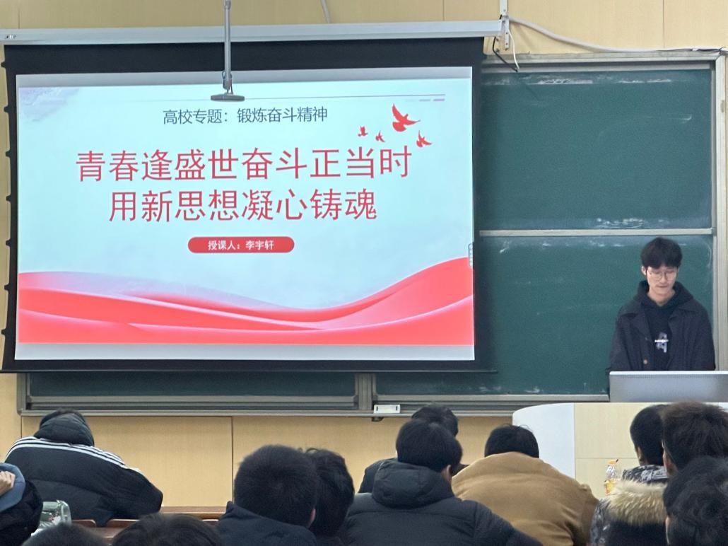 团课上,李宇轩同学首先带领同学们学习了习近平新时代中国特色社会主义思想的重要性,以及党的思想旗帜和精神旗帜。在团课上,同学们围绕如何在新时代背景下锻炼奋斗精神进行了深入探讨。大家一致认为,要以习近平新时代中国特色社会主义思想为指导,树立远大理想,明确奋斗目标,坚定信念,勇于担当。同时,要注重实践锻炼,通过参与各种实践活动,不断提升自己的能力和素质。