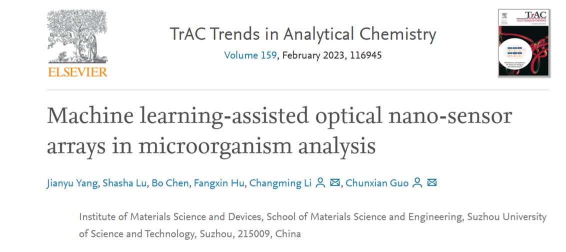 李长明教授、郭春显教授团队的最新研究成果发表在分析化学领域知名期刊《Trends in Analytical Chemistry》(IF=14.908)上,相关成果题目为《Machine learning-assisted optical nano-sensor arrays in microorganism analysis》。杨健宇博士为第一作者,李长明教授、郭春显教授为通讯作者,我校为第一通讯单位。