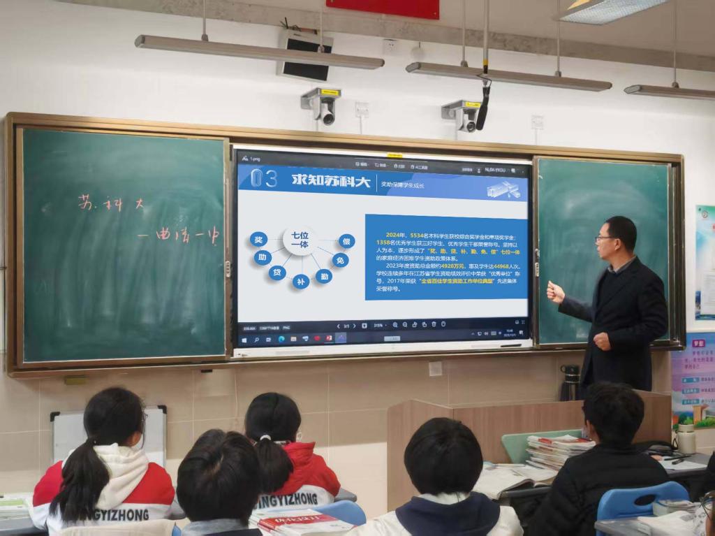 宣讲会从印象苏科大、博闻苏科大、求知苏科大、活力苏科大、成才苏科大等5方面展开,重点解读了我校最新招生政策、专业设置、培养模式、资助体系及就业前景等,并就学生们关心的学业规划、校园生活等问题进行了耐心细致的解答。