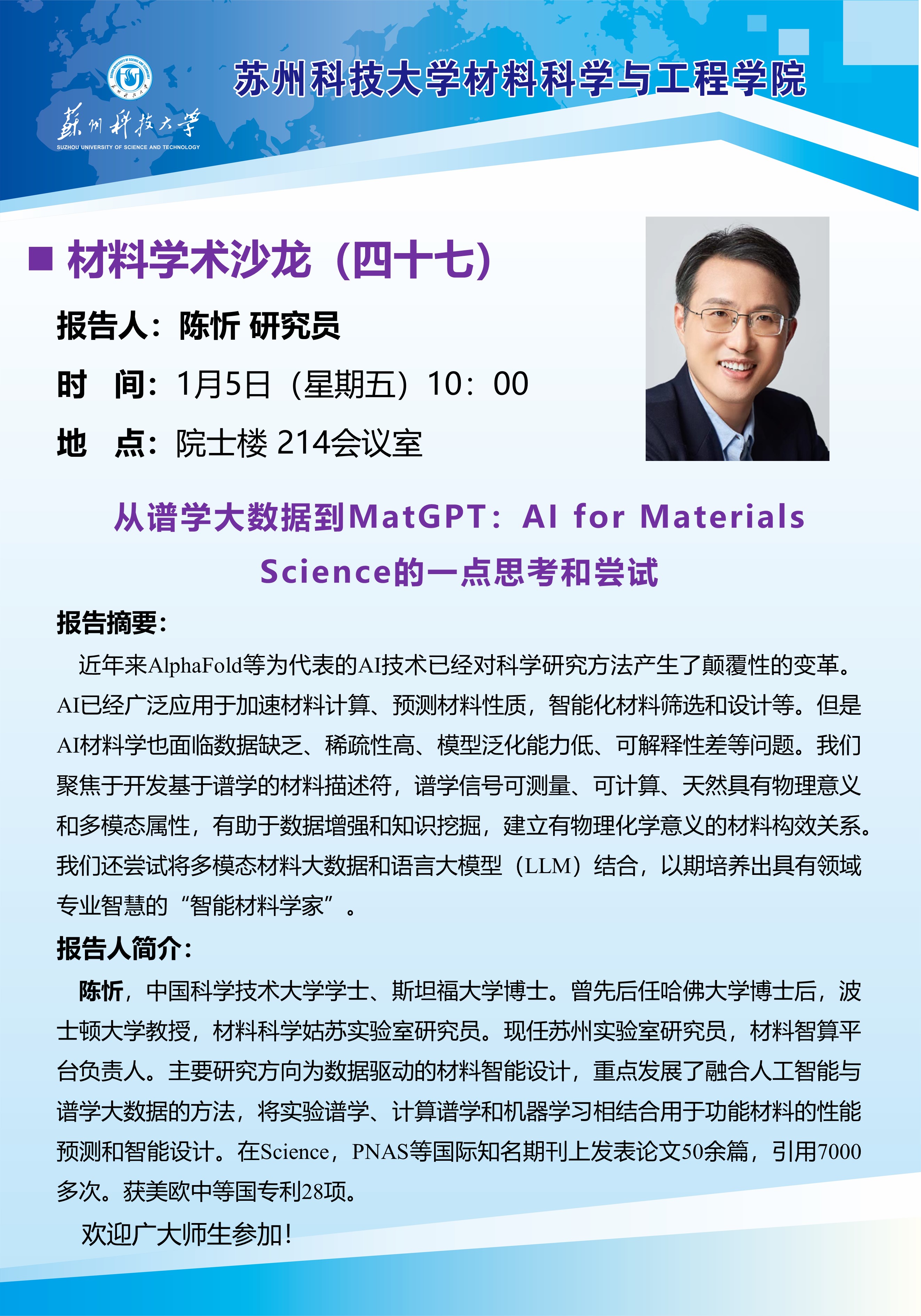 球探学术沙龙四十七:从谱学大数据到MatGPT: AI for Materials Science的一点思考和尝试