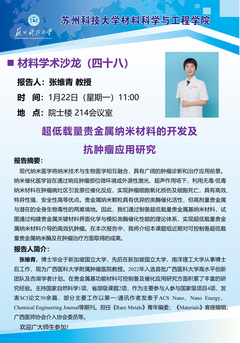 球探学术沙龙四十八:超低载量贵金属纳米材料的开发及抗肿瘤应用研究
