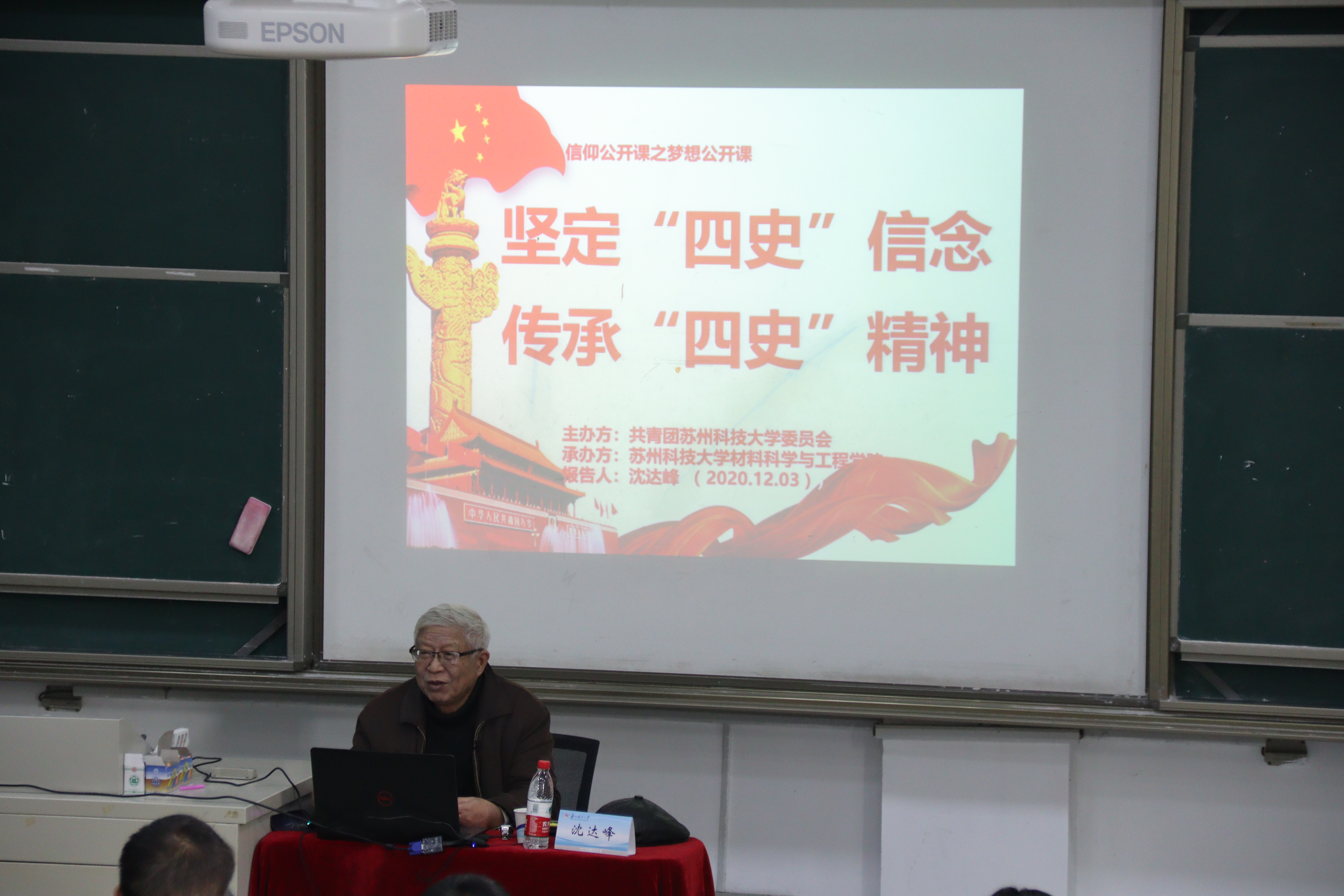 特别邀请苏州科技大学关心下一代工作委员会副主任、教学督导组副组长、苏州市高校共青团“信仰公开课”导师沈达峰,于C5-205教室开展以“坚定‘四史’信念,传承‘四史’精神”为主题的信仰公开课。校关工委特约组织员、原校离退处党工委书记郑海,球探体育