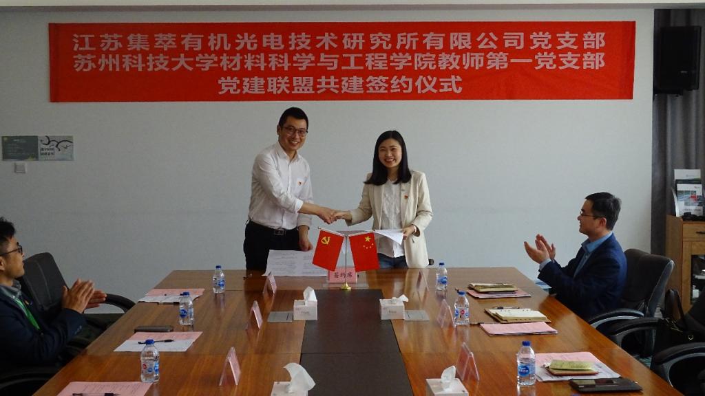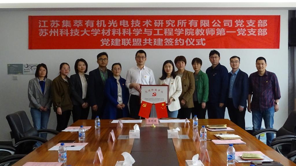教师第一党支部与集萃有机光电所党支部在江苏集萃有机光电技术研究所有限公司举行了“光电转化材料研发、测试共享平台”党建联盟签约仪式。球探