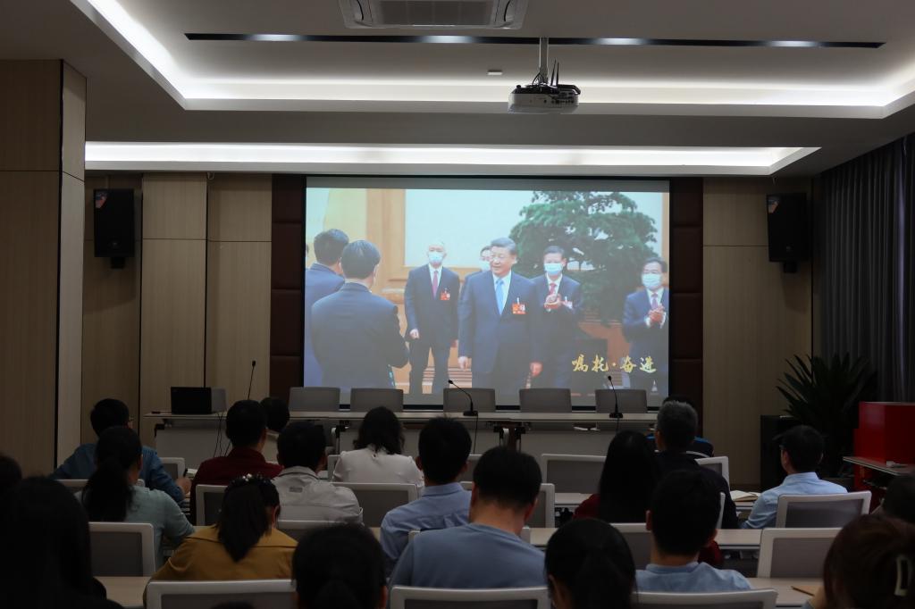 全体与会人员集体观看了视频《嘱托·奋进》。党委副书记兼副院长李永丹从党的二十大报告的起草过程、总体框架及其内容逻辑等方面领学了党的二十大报告,副院长叶常青从党章的基本概述、修订的重大意义、30个重要修订等方面领学了《中国共产党章程》。