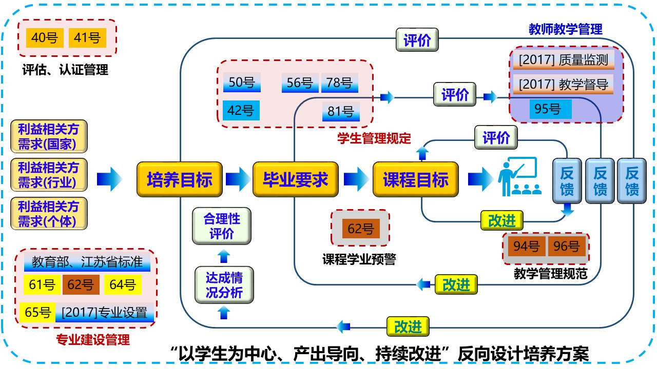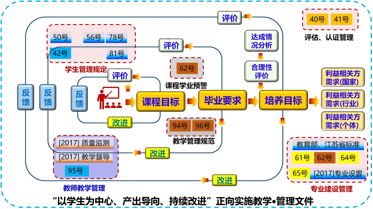 围绕立德树人这一根本任务,坚持“以本为本”、“四个回归”和“三全育人”开展教学工作,培养高素质材料类新工科创新应用型人才。以下为学校主要教学管理文件在教学活动中的作用。