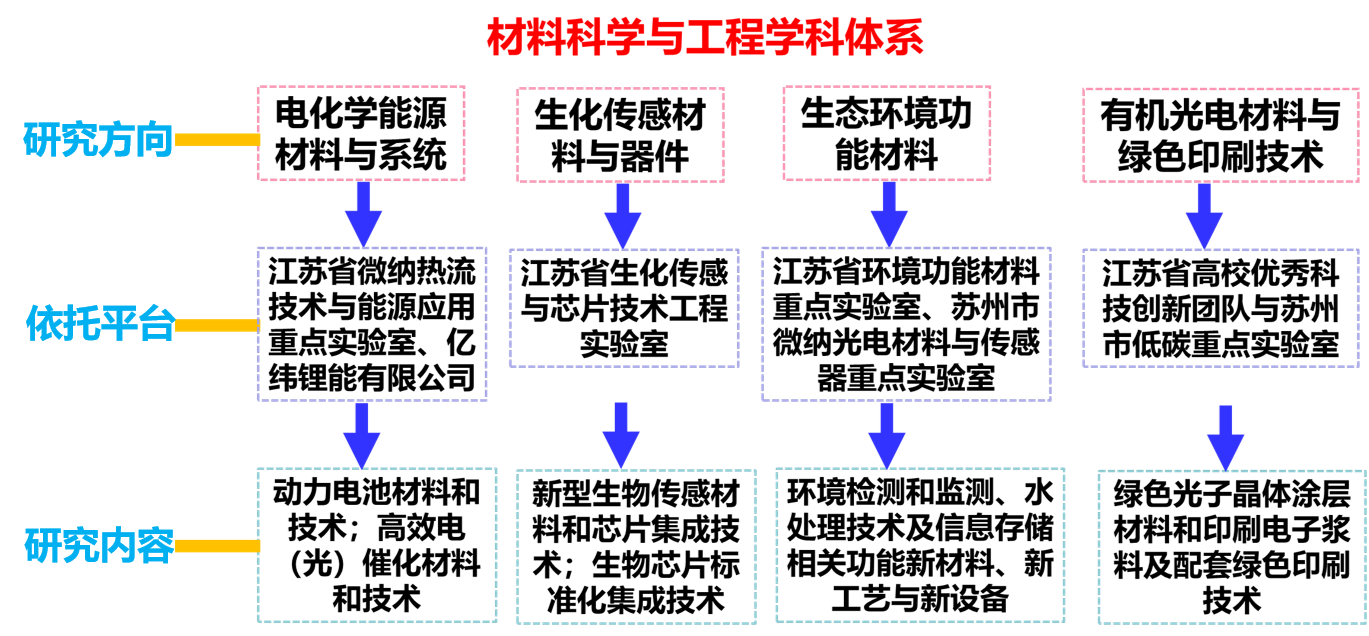 材料科学与工程学科于2011年获批一级学科硕士点授予权,2021年获批省重点学科,同年获批材料与化工专硕。现有新能源材料与器件、功能材料(省一流专业)、材料化学、无机非金属材料四个本科专业。学科先后入选江苏省第一、二、三期优势学科建设项目,2022年入选省“十四五”重点学科,同年9月进入全球ESI前1%。学科围绕国家重大战略,紧盯长三角一体化及江苏、苏州高质量创新发展需求,瞄准材料学科前沿交叉内涵高质量建设,凝练学科特色和优势,打造高水平科研和教学一体化学科团队,创新驱动服务地方经济可持续发展。